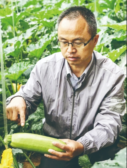 雷逢进专注田间,细察西葫芦长势 ■ 资料图